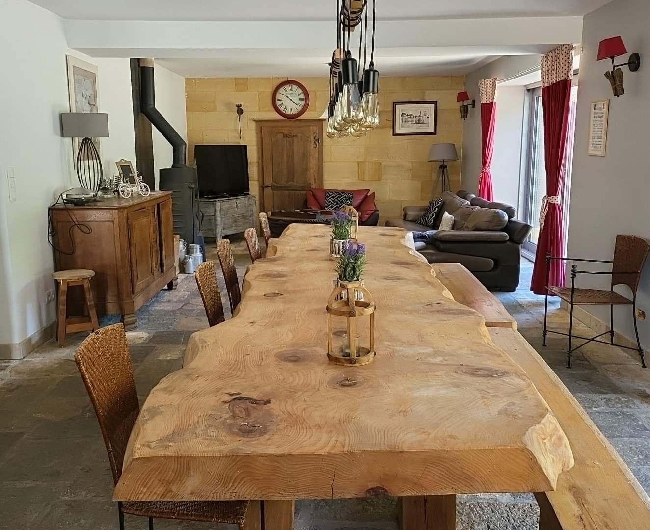 Une grande salle à manger située dans le grand gîte peut recevoir sans problème les 15 personnes. Vous y trouverez une cheminée pour les soirées au coin du feu avec même un flipper et un baby-foot pour les parties entre amis.